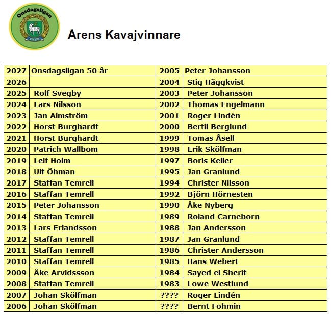 Onsdagsligan består av två tävlingar. Ligan och Kavajen vars Riktlinjer du kan läsa här nedan.